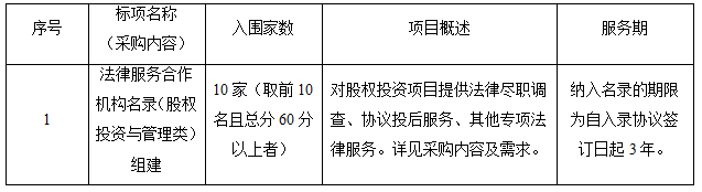 一、項目名稱:法律服務(wù)合作機(jī)構(gòu)名錄(股權(quán)投資與管理類)組建項目