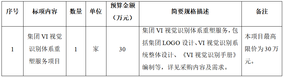 一、項目名稱:集團VI視覺識別體系重塑服務項目