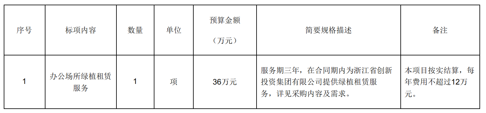 浙江省成套招標代理有限公司受浙江省創(chuàng)新投資集團有限公司委托,現(xiàn)就辦公場所綠植租賃服務項目進行競爭性磋商,歡迎國內(nèi)合格的供應商前來磋商。
